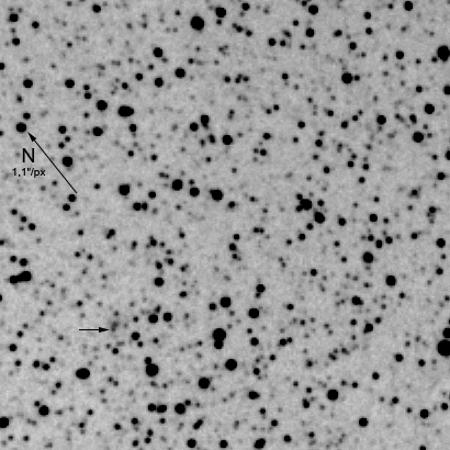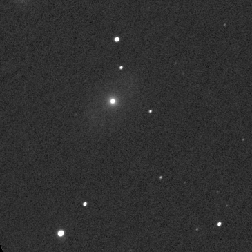 Cette galaxie compacte du catalogue de Zwicky a été étudiée par Angione. L'examen des plaques photographiques de Harvard montre une magnitude moyenne de 15.29. Cette magnitude est supérieure de 0.1 sur la période 1933-1939. Ce faible écart n'est toutefois pas significatif vu l'incertitude sur les mesures. The compact galaxy Zw I 0120+34, Fairfal & Angione, PASP, 1969 |