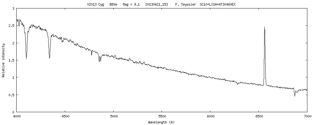 Bess data base contains 2078 stars amoung them 1233 have not any spectrum. For declination > -10 °, 262 stars have no spectrum List of Be Stars without spectrum in Bess Forte extinction interstellaire E(B-V) = 0.75 Forte Extinction interstellaire E(B_V) = 0.92 Extinction : E(B-V) = 0.15 _v1322cyg_20130719_952.fit Be stars in Pleiades Custer